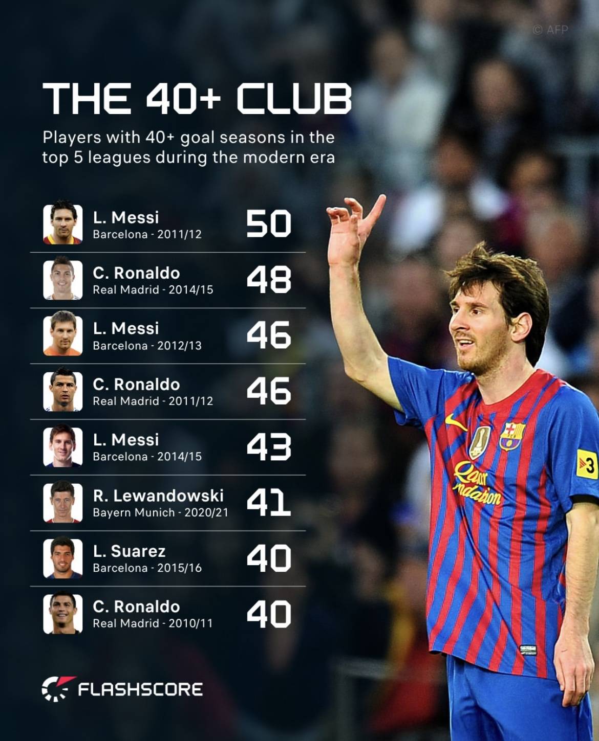这组数据不仅突显了梅西与C罗两位球员在巅峰时期的绝对统治力,同时也通过高产赛季的比例,进一步强调了C罗在有限赛季里把握极限输出的能力。相比之下,苏亚雷斯和莱万多夫斯基虽然也进入了这一榜单,但他们的成就仅停留在各自巅峰赛季的爆发,这进一步说明了能够踏入“40俱乐部”的门槛是多么的艰难,它需要个人能力和团队创造力的完美结合。